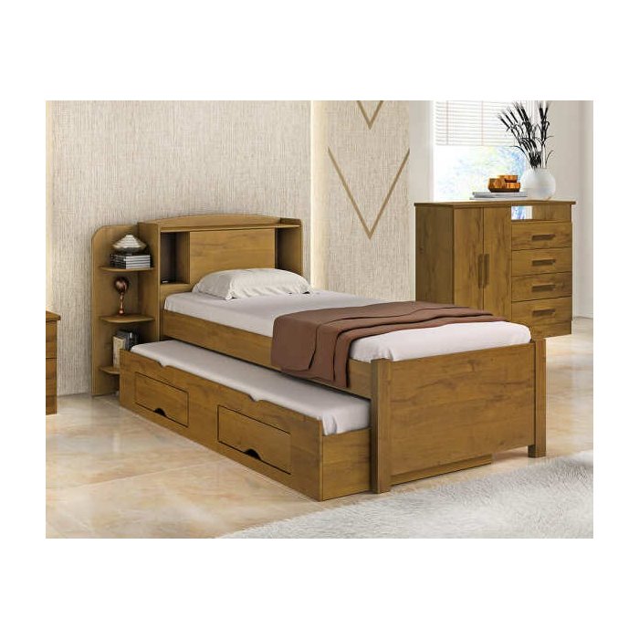 Cama Solteiro com Cama Auxiliar Box com 2 Gavetas 100% MDF Milênio D'Doro Carvalho