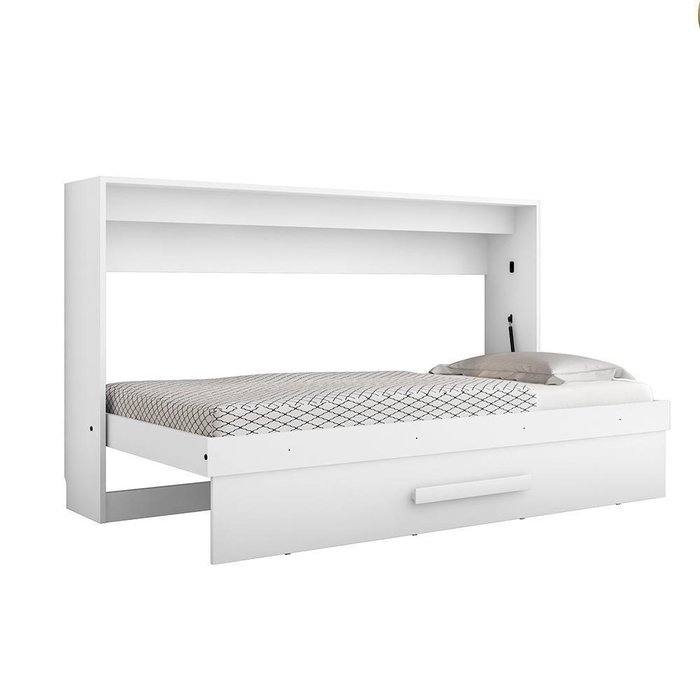 Cama Solteiro Dobrável de Parede - Branco Brilho