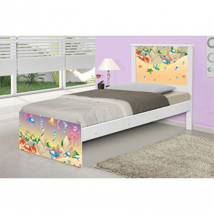 Cama Solteiro Juvenil Barcelona Adesivada Fundo do Mar Feliz