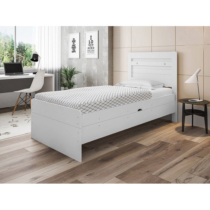 - Possui baú embaixo do estrado. Dimensões: Alt: 22 cm, Larg: 53 cm, Prof: 190 cm
