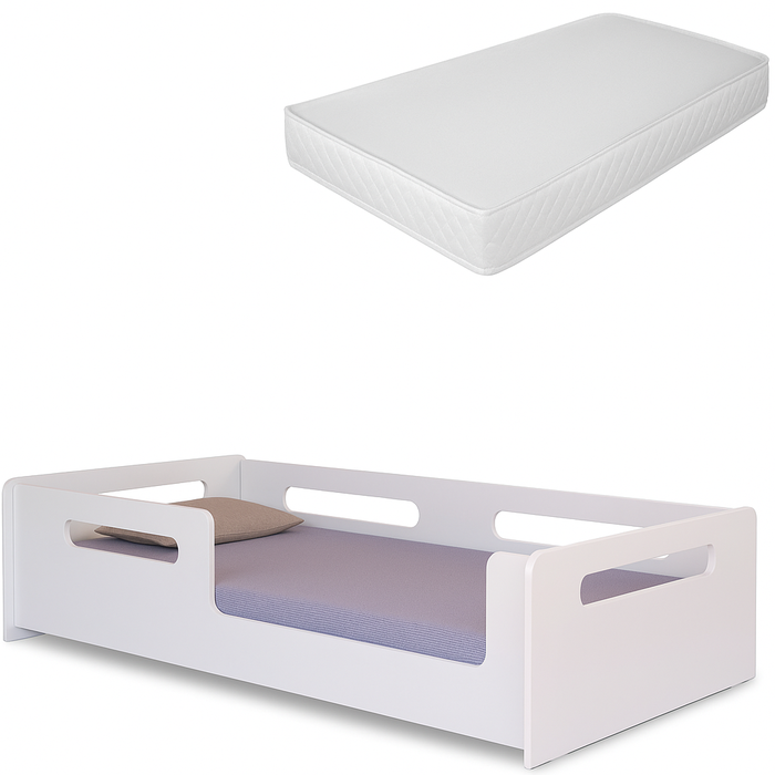 Cama Solteiro Montessori Infantil Branca com Proteção Segura e Colchão