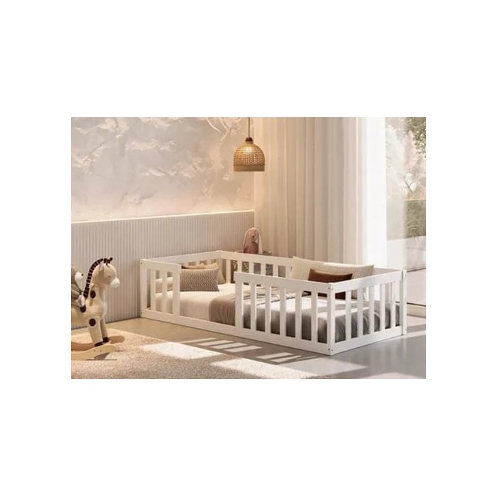 Cama Solteiro Montessoriane Com Grade BrancoA Cama Montessoriana é perfeita para garantir mais autonomia aos pequenos. Um projeto lindo produzido em madeira maciça, perfeito para trazer magia ao quarto e maior experiencia para nossas crianças.