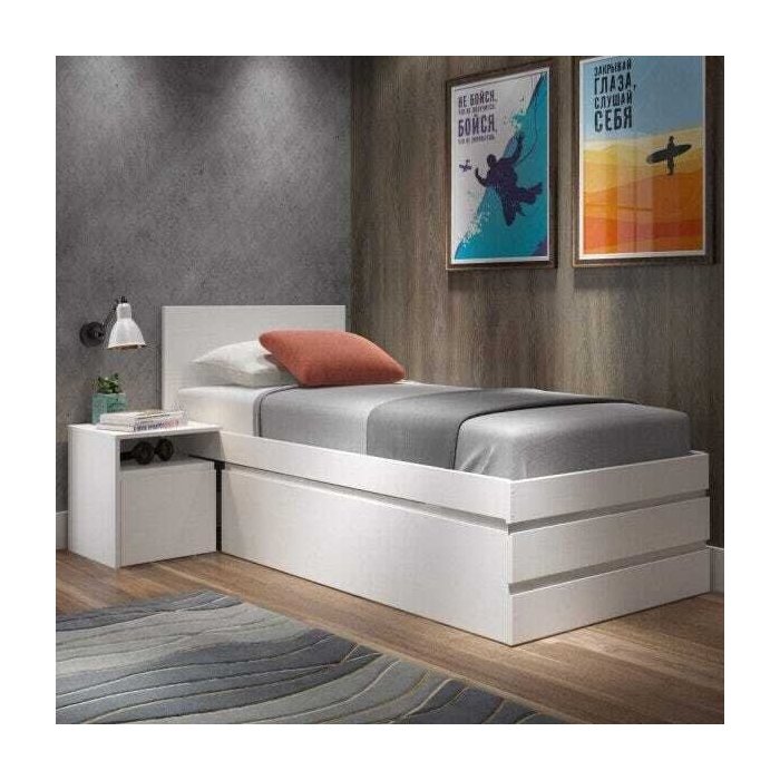Cama Solteiro Multifuncional 1 Mesa de Apoio 3 Gavetas Comfort Inter Link Branco Lavado