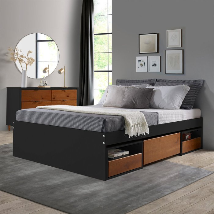 Cama Solteiro Multifuncional 95x194cm Kassie Cazarara Preto/Mel