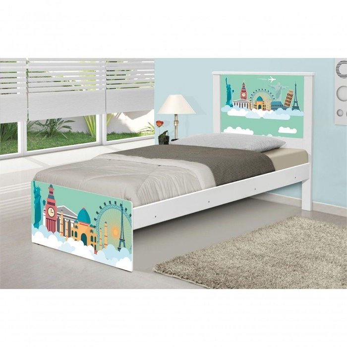 Cama Solteiro Mundo Viagens com Colchão Branco