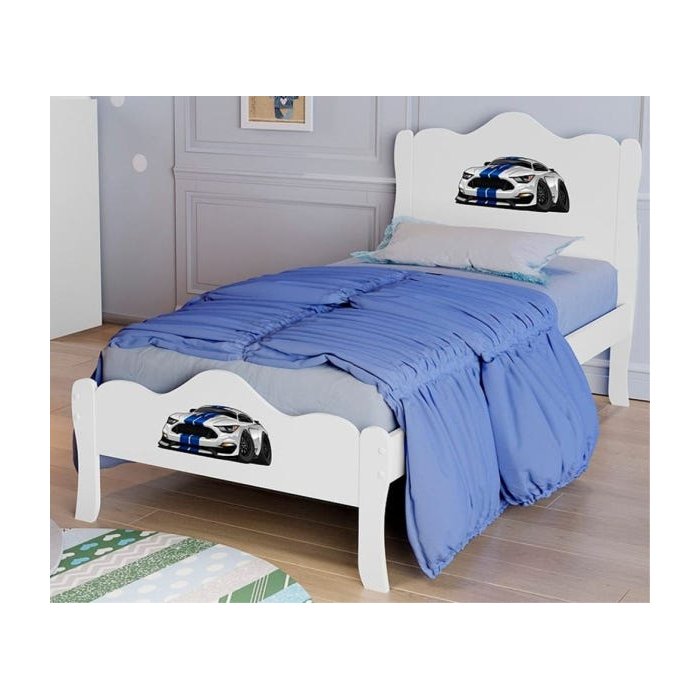 Cama Solteiro Mustang Lisa Branco A Cama Solteiro Mustang é a cama ideal para seu filho ter noites de sono tranquilas. Com um designe moderno e de alta beleza, ela proporciona muito conforto e segurança para criança. Um ambiente alegre e colorido levará a imaginação de seu filho as alturas. Cama vem com duas opções de adesivos para colagem, uma coroa e um carro. Opção de colagem fica a critério do cliente. Informações do Produto: Altura: 106 cm Largura: 95 cm Comprimento: 196 cm Informações adicionais: Acompanha colchão: Não Tipo de colchão Indicado: Solteiro (88 x 188 com Selo INMETRO) Cor principal: Branco Material principal: MDF Estampado: Sim Tema: Carro Itens Inclusos: 01 Cama. Kit completo para montagem, manual detalhado de instruções. Informações complementares: - Fotos meramente ilustrativas do produto no ambiente. - Os objetos que ambientam as fotos não acompanham o produto; - Verificar descrição e tamanho do produto antes da compra. - Avaliar a mercadoria no ato do recebimento e recusar em caso de divergência ou avarias. - Mantenha as informações de contato e endereço de entrega atualizados para entrarmos em contato caso necessário. - Limpar com flanela ou pano macio seco, não utilizar produtos abrasivos, desengordurantes, álcool ou solvente. Não expor o produto diretamente à luz solar e à umidade. * Sugerimos a contratação de um montador profissional para a montagem do produto. Não nos responsabilizamos por avarias causadas no ato da montagem. * Não nos responsabilizamos pela montagem e desmontagem do produto no ato da entrega e devolução, assim como os custos gerados nestas situações. * A transportadora entregará o produto no andar térreo do endereço de entrega. * Não nos responsabilizamos por subir escadas, corredores e elevadores ou transporte por guincho em apartamentos.