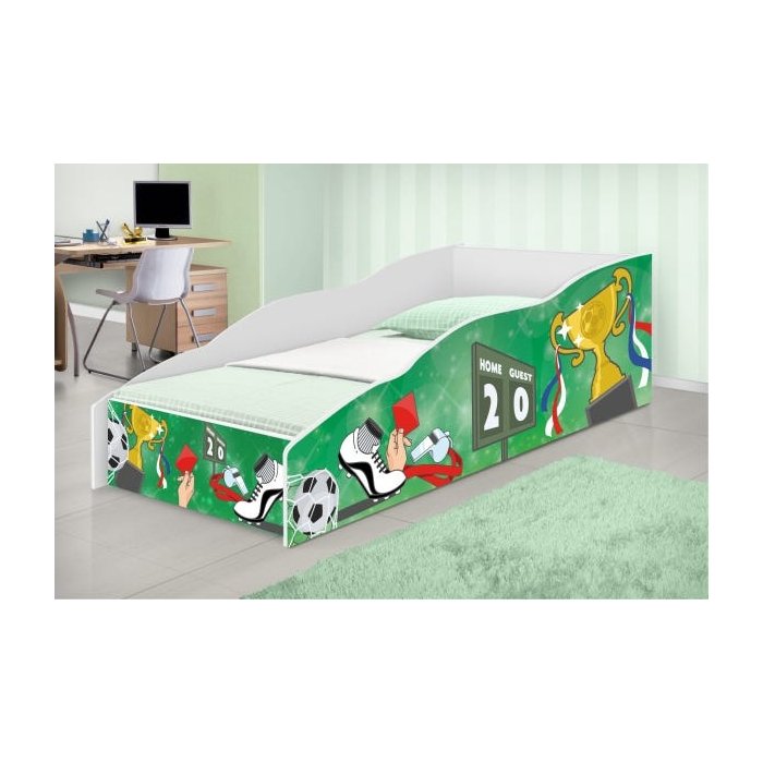 Cama Solteiro Play Partida de Futebol com Colchão A cama, com adesivagem nos painéis, conta com design moderno e direcionado para o conforto, bem-estar e segurança da criança, conferindo um ambiente alegre, colorido e divertido. Bordas arredondadas evitando riscos de acidentes, Adesivos em Vinil de alta qualidade e resistência. Produzida em MDF, com pintura especial, proporcionando melhor acabamento e durabilidade em sua estrutura. Itens Inclusos 01 Cama. 01 Colchão. Kit completo para montagem, manual detalhado de instruções. Garantia 3 meses contra defeito de fabricação Instruções de Limpeza Limpar com flanela ou pano macio seco, não utilizar produtos abrasivos, álcool ou solvente. Não expor o produto diretamente à luz solar e à umidade. Medidas da Cama Altura: 60 cm Largura: 91 cm Comprimento: 200 cm Incluso Colchão D20 de 188 x 88 x 14cm com Selo de Qualidade Inmetro. Produzido 100% em MDF * Suporta até 100kg. Obs: A Cama é para Colchão tamanho Solteiro (188 cm de comprimento), o que indica que seu filho poderá utiliza-la por anos e anos mesmo após ter crescido. * Fácil Montagem * Apesar de fácil de montar, sugerimos a contratação de um montador profissional para a montagem do produto. Não nos responsabilizamos por avarias causadas no ato da montagem. * Não nos responsabilizamos pela montagem e desmontagem do produto no ato da entrega e devolução, assim como os custos gerados nestas situações. * A transportadora entregará o produto no andar térreo do endereço de entrega. * Não nos responsabilizamos por subir escadas, corredores e elevadores ou transporte por guincho em apartamentos. * Imagens meramente ilustrativas. * Objetos que compõem o ambiente das fotos não acompanham o produto.