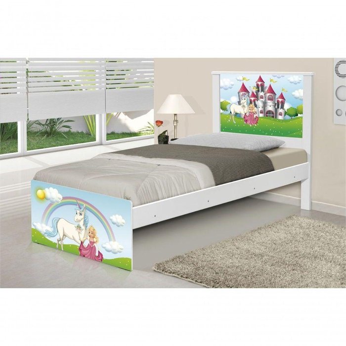 Cama Solteiro Princesa Encantada com Colchão Branco