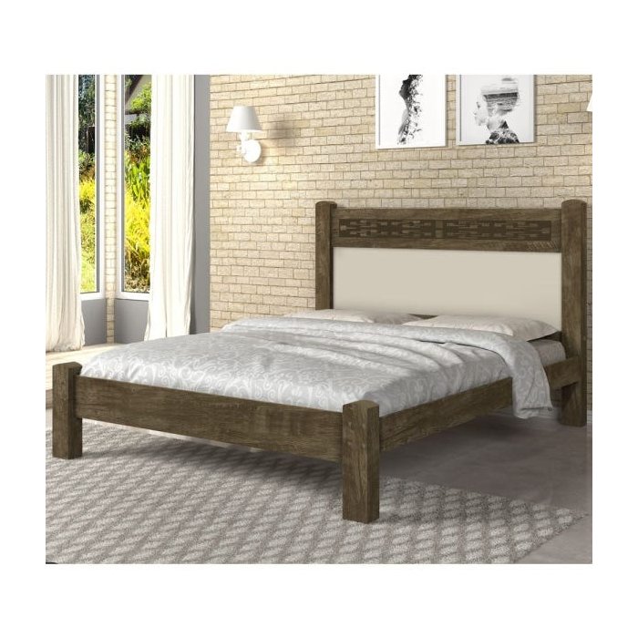 Cama Solteiro Raissa Castanho Off White Detalhe Castanho com Colchão