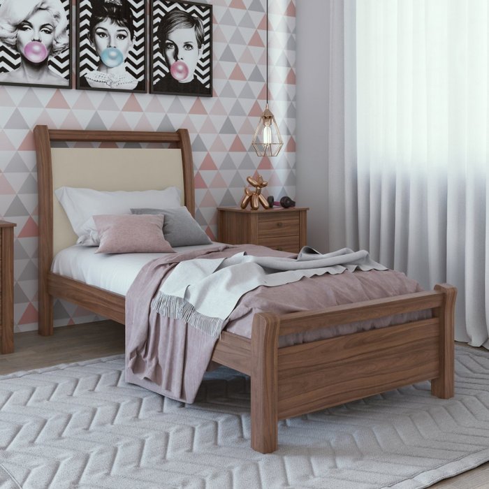 Cama Solteiro Reali Plus Móveis Lopas Imbuia Naturale/Off White