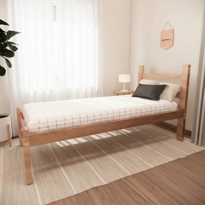 Cama Solteiro Reforçada em Madeira Maciça Natural