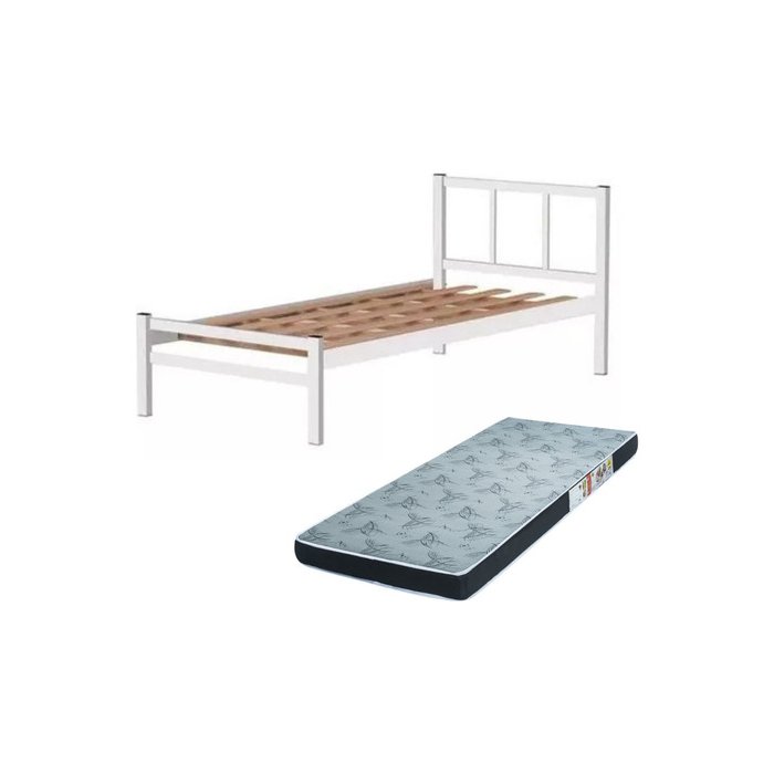 Cama Solteiro Tubolar com Colchão D28, Alojamento, Pousadas. Branco