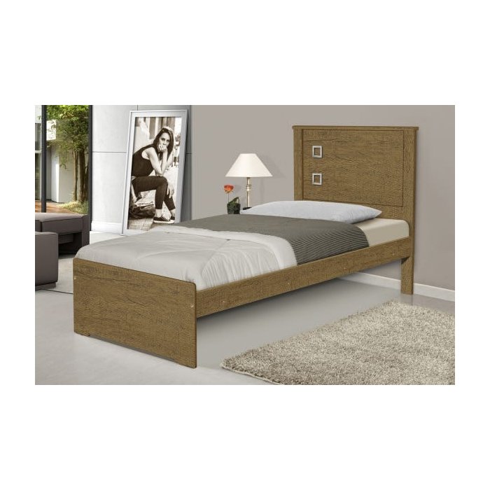 Cama Solteiro Barcelona Carvalho com Colchão