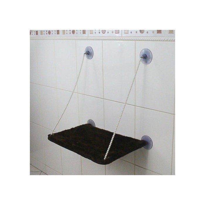 CAMA DESCANSO SUSPENSA Kit composto de: dois tubos de 50cm, dois tubos de 30cm com encaixe para montagem e tecido para revestimento, (montagem simples e prática). Suporte: Cabo de aço revestido com miçangas e quatro ventosas de fixação. Suporta pet até 20kg Indicado para superfícies lisa (Vidro, Ladrilho e Porcelanato) Dimensão: 35x55cm TECIDO ACQUABLOCK - NÃO ADERE O PÊLO E IMPERMEÁVEL!! ESTAMPA DE GATINHOS PELUCIA MARROM
