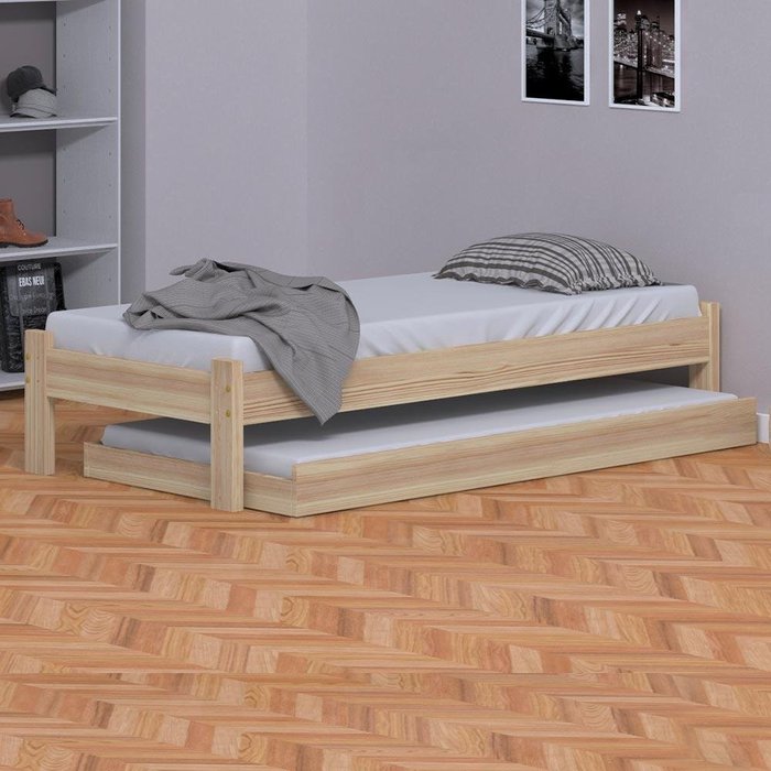 Cama Turca em Madeira Maciça com Auxiliar Solteiro Crua Nemargi