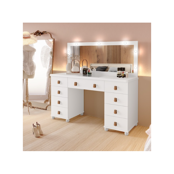 -01 Penteadeira LED com Espelho 9 Gavetas Camarim Planet Baby