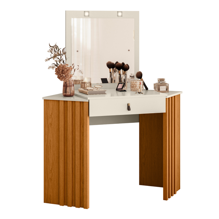Camarim Ripado com Led e Espelho Uraí Cinamomo Off White Cinamomo/Off White