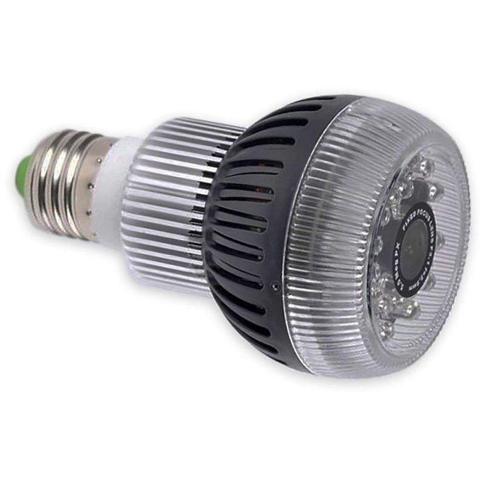 Este aparelho de espionagem é perfeito para filmagens residenciais, possui uma câmera camuflada em lâmpada espiã de altíssima resolução e totalmente secreta, seu design é idêntico a de uma lâmpada de LED comum, com ela você faz vídeos com detecção de movimento ou visão noturna, e ainda faz fotos.