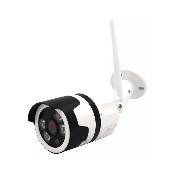 Câmera de segurança ip externa wireless 1.0 megapixel, com visão noturna infravermelho (ir-cut) e definição de 720p hd. A câmera de vigilância conta com uma antena de 5dbi e entrada para micro sd de até 64gb.