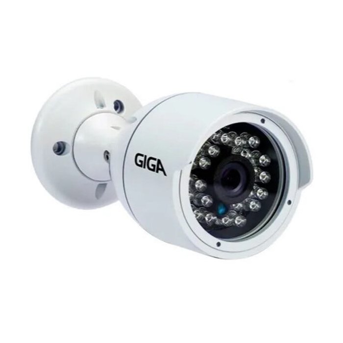 - O modelo de câmera IP GS0147 é uma câmera bullet metálica, cor branca, e possui alcance infravermelho até 30 metros para captura de objetos e pessoas em ambientes sem luz, discreta e fácil de instalar.Características:- Marca: GIGA- Modelo: GS0147Outras características:- Alta Definição – Full HD(1080p)- Real Color - Cores mais nítidas e reais- DWDR - Digital Wide Dynamic Range- Proteção de Surto embutido- 0 lux com infravermelho acionado- 15 leds - F5 - canhão de infra- Alcance Máximo do infravermelho: 30 metros- Ângulo de Visão Horizontal: ~ 81°- Função AGC, AES e AWBEspecificações:- Vídeo: Compressão H.264 | 1080p, Resolução: 1080p (1920X1080), Dual Stream : Main Stream: 15 fps@1080p (1920x1080) Sub Stream: 17 fps@D1- Sensor: CMOS 1/2.7" (Full HD)- Lente: Fixa 3.6 mm / F2.1 / MEGAPIXEL, Filtro IR Auto-Removível- Canhão Infravermelho: 15 LEDs, Alcance Recomendável - 30 metros- Iluminação mínima: Cor: 0,1 Lux@ (F1.2, AGC ON), 0 Lux com IR acionado- Network: Visualização em tempo real para até 10 usuários, Comunicação ONVIF 2.41, Conector RJ45 – Ethernet 10/100 Mbps, Protocolo s – IPV4, TCP/IP, http, https, UPnP, RTSP, FTP, PPPoE, DHCP, DDNS, NTP- Ajuste de imagem: Ajuste de Resolução, Qualidade e Bit Rate do Luxo de vídeo (CBR/VBR)- Alarme: Detecção de Movimento | Detecção de Câmera Obstruída | Perda de vídeo- Vedação: Ip66- POE - Power Over Ethernet: Não- Proteção de Surto: Sim- Alimentação (±10%): 12VDC / Conector P4 fêmea- Consumo de corrente (Nominal/Máxima): 120mA(IR OFF) / 270mA(IR ON)- Temperatura/umidade operacional: -10°~60º / Umidade inferior a 90% (sem condensação)Dimensões e peso:- Dimensão: 64,5x136x64,5mm- Peso: 465g