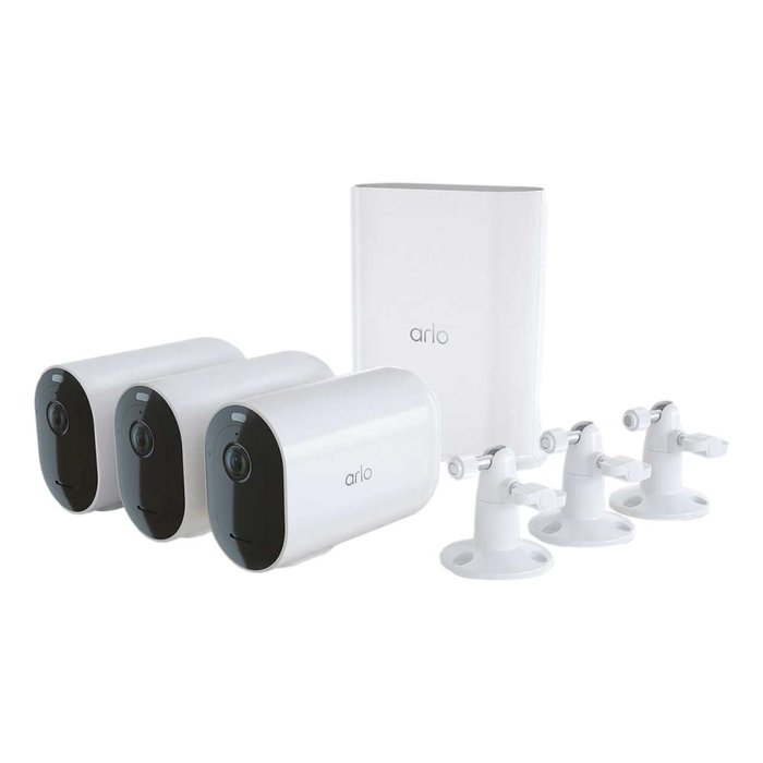 Inclui: 3 câmeras com bateria e caixa XL, 3 suportes de segurança, 1 SmartHub e 1 cabo de carregamento magnético
