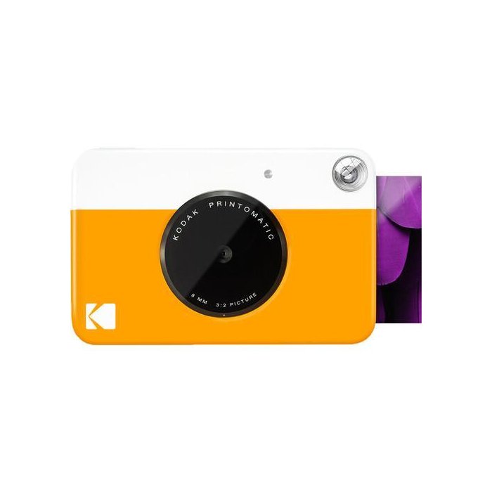 Misturando a diversão das impressões instantâneas com a conveniência do digital, a kodak printomatic, em amarelo, é uma câmera digital que pode produzir impressões instantâneas usando o papel fotográfico opcional kodak 2 x 3 zink. Usando um sensor de imagem de 5mp e grande angular f/ 2, a câmera grava imagens digitais que são impressas automaticamente como impressões de 2 x 3 para compartilhamento, bem como salvas em um cartão microsd.