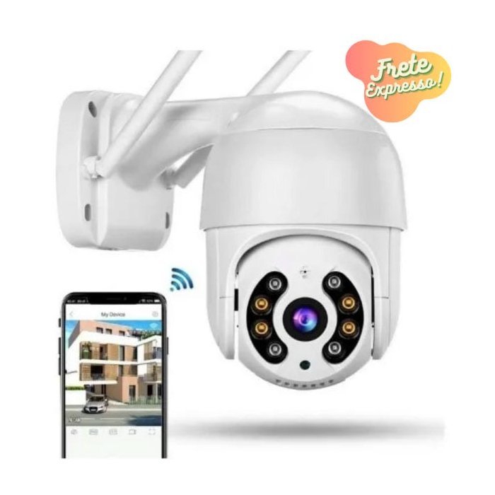 Deixe sua casa, escritório ou qualquer outro ambiente muito mais seguro de maneira rápida e fácil! Com a Câmera IP Externa WIfi 360 Speed Dome, você mesmo faz a instalação e protege sua casa pelo celular! Nunca foi tão fácil ficar 100% seguro. Com a rotação bidimensional da câmera, além de sensor de movimento e infravermelho, você cobre uma área muito maior com apenas uma câmera.Acesso remoto pelo celular de qualquer lugar do mundoNão precisa de DVRNão precisa de DynDNSNão precisa de técnico para instalarFaça você mesmo!Câmera IP resistente à águaGira 355° na horizontal - 100° na verticalTodos os comando pelo celularConexão sem fio Wifi ou via cabo RJ45Slot para cartão de memória de até 128gbAplicativo: IPC360 Pro - Android e IOSDetecção de movimento com notificação em seu celularSistema infravermelho, filma em total escuridãoMicrofone e alto falante integradosEspecificações técnicas:Resistente à água: SimRotação: 355° Horizontal - 100° verticalResolução: HD - 2mp - 960p (1280x960p).Dispensa o uso de DVR.Trabalha com a tecnologia WIFI (Sem fio) ou com cabo de rede (Padrão Rj45).Lente: 3.6mmAlimentação: fonte 12v / 2ABateria interna: NãoLed infravermelho: Sim - 8 leds de alto brilhoAlcance: 15mtsSlot para cartão: Sim - até 128gbConexão: WIFI (wireless) ou cabo de rede (Padrão Rj45)Compatibilidade: Android / IOSMicrofone: SimAlto-falante: SimResolução: HD 1280960pPode suportar até 5 usuários simultâneosPode visualizar 4 câmeras ao mesmo tempoFunção avançada de luminosidade infravermelho - Proporcionando melhor visibilidade em total escuridão.Aplicativo: IPC360 ProConteúdo:1 Câmera IP Infravermelho1 Fonte blindada a prova de agua1 Manual de instruções1 Acessórios para instalação2 Borrachas de vedação