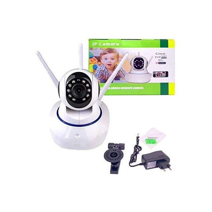 Câmera IP sem Fio 360° 3 Antenas HD Wifi Rj45 Visão Noturna Alarme - Luatek