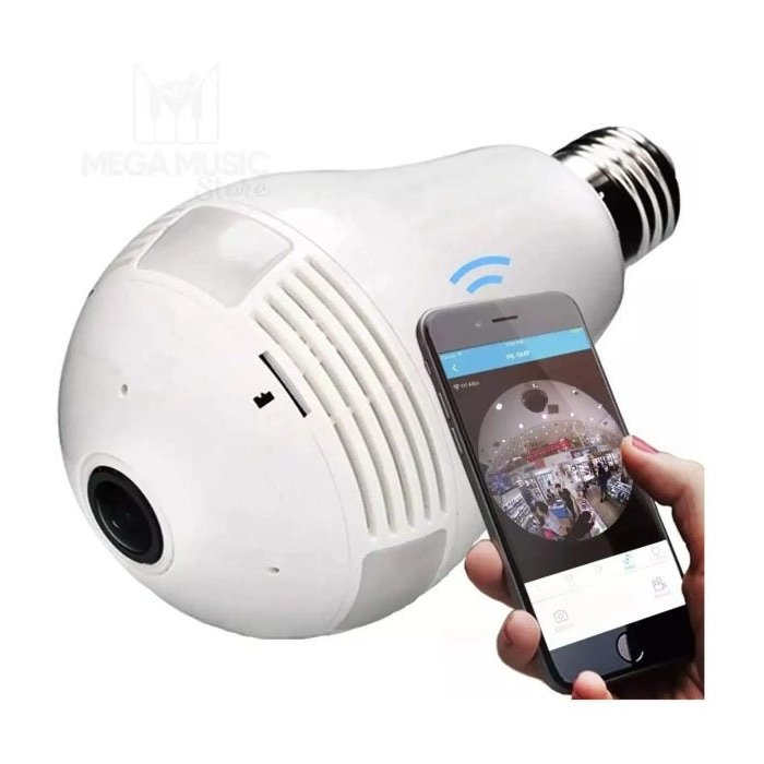 Câmera Lâmpada Alta Definição 360 Panoramica Espia Wifi Ip Seguraca Vr V380