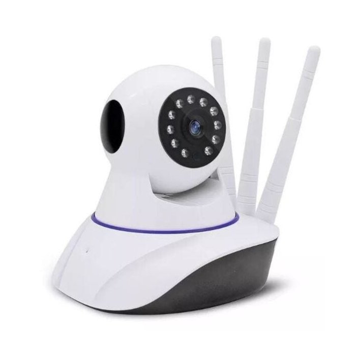 Câmera ip com três antenas para melhor visualização de imagens através da internet ou celular.