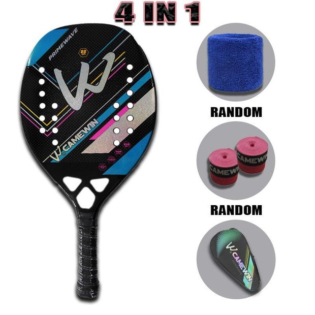 Novo profissional quadro de carbono raquete de tênis de praia profissional raquete de tênis rosto fibra de vidro saco da cintura unisex raquete de praiaMaterial do quadro: carbono 100%