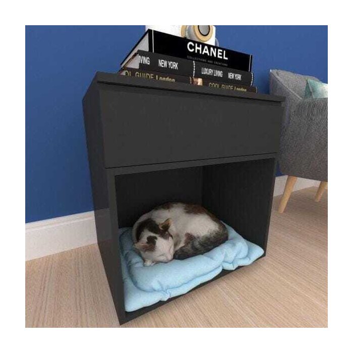 Caminha Mesa de Cabeceira Gato Gaveta MDF Preto