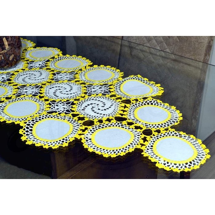 Caminho de Crochê Linha Cléa - Branco e Amarelo