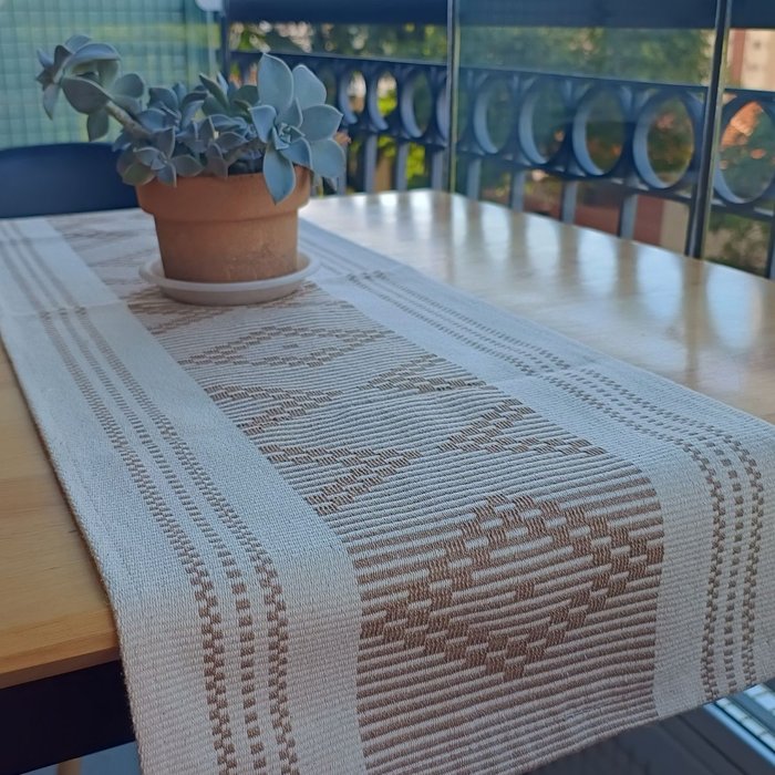 Caminho de Mesa Artesanal Algodão Cru Rústico Marrom