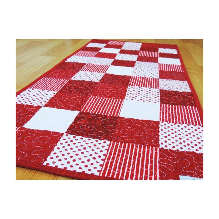 Caminho de Mesa Patchwork, Vermelho e Branco, 43cm x 100cm