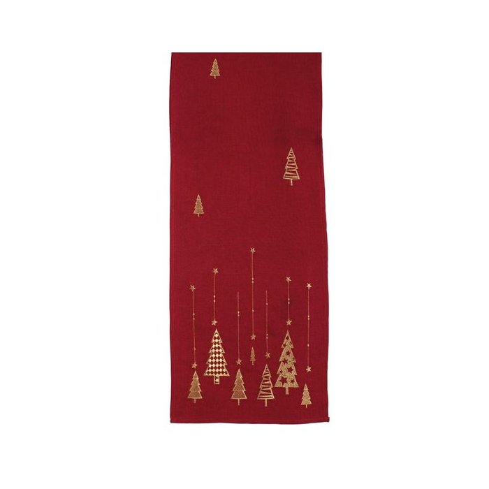 Caminho de Mesa Pinheiros Vermelho e Dourado 35X175