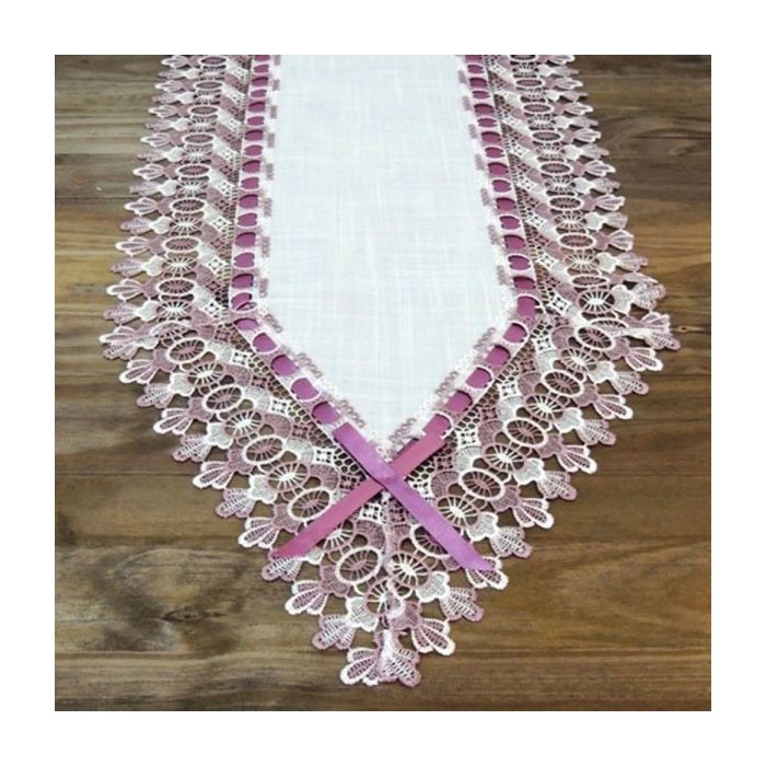 Caminho de Mesa Renda Guipir com Fita de Cetim 40 Cm X 1,80 M - Wan Xin - Lilás/branco