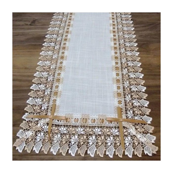 Caminho de Mesa Renda Guipir com Fita de Cetim 40 cm x 90 cm - Wan xin - Bege/Branco