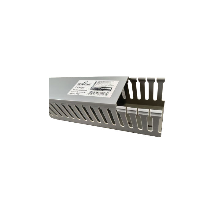 Aplicação: Ideal para instalações de quadros elétricos, quadros de comando, em geral. São canaletas de recorte aberta, facilitando a montagem e instalação de cabos e fios em quadros de comando e proteção. Proporcionando maior organização e segurança. Recorte aberto, possuem abertura lateral onde o rasgo vai até o encaixe da canaleta, possibilitando a derivação em qualquer ponto da canaleta.