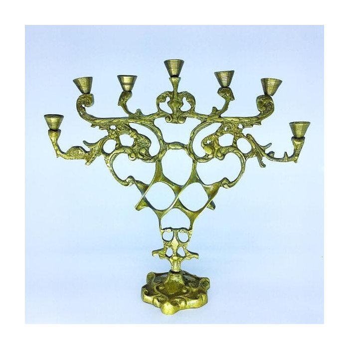 Menorah de 7 braços feita de bronze. Arte trabalhada à mão com detalhes exclusivos que deixará sua sala muito mais bonita. A Menorah é um simbolo judaico usado por Moisés para ser colocado dentro do Templo Sagrado. Alguns dizem representar os arburtos em chamas que Moisés viu no Monte Sinai. A Menorah pode ter várias interpretações interessantes, além de ser uma linda decoração.