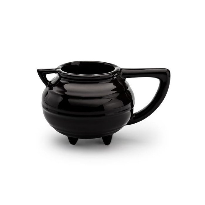 Caneca 3D, modelo caldeirão de bruxa, produzida artesanalmente em cerâmica nacional, com acabamento esmaltado e capacidade para 380 ml.