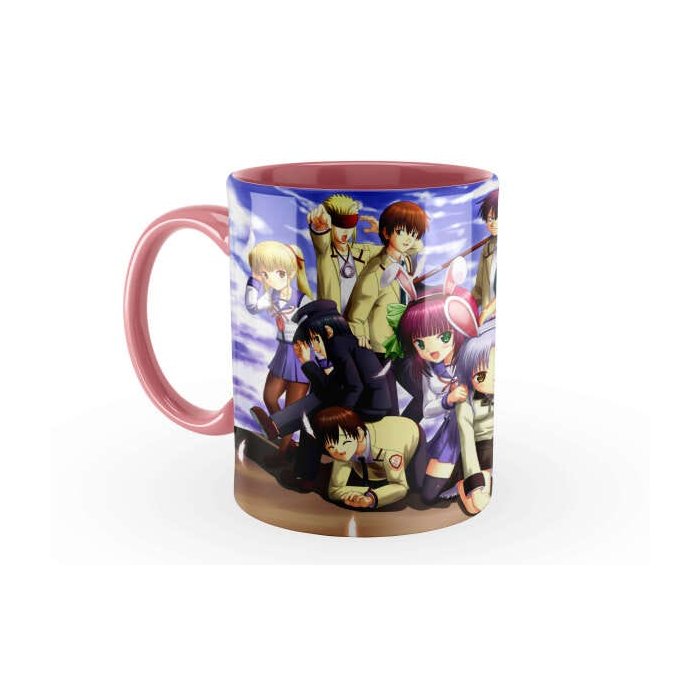 Caneca Angel Beats Personagens 325 ml Cerâmica Interior e Alça Rosa
