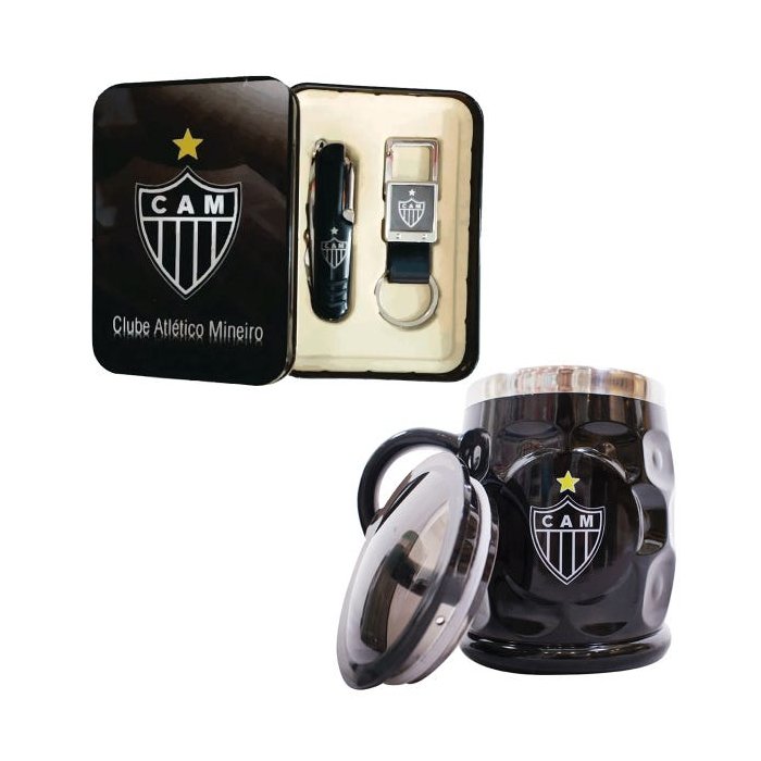 Caneca Atlético Mineiro Térmica 500ml com Tampa Canivete Suíço e Chaveiro