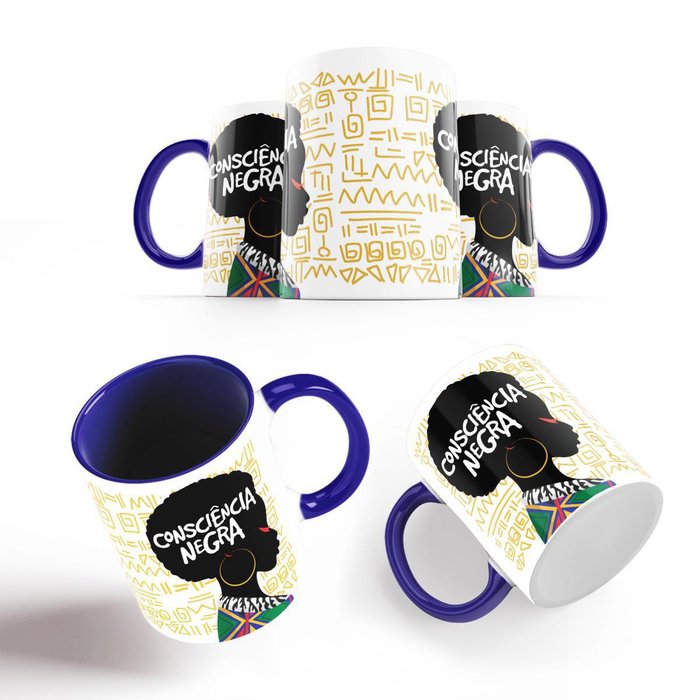 Caneca Azul Frase Consciência Negra Arte Afrodecêndencia