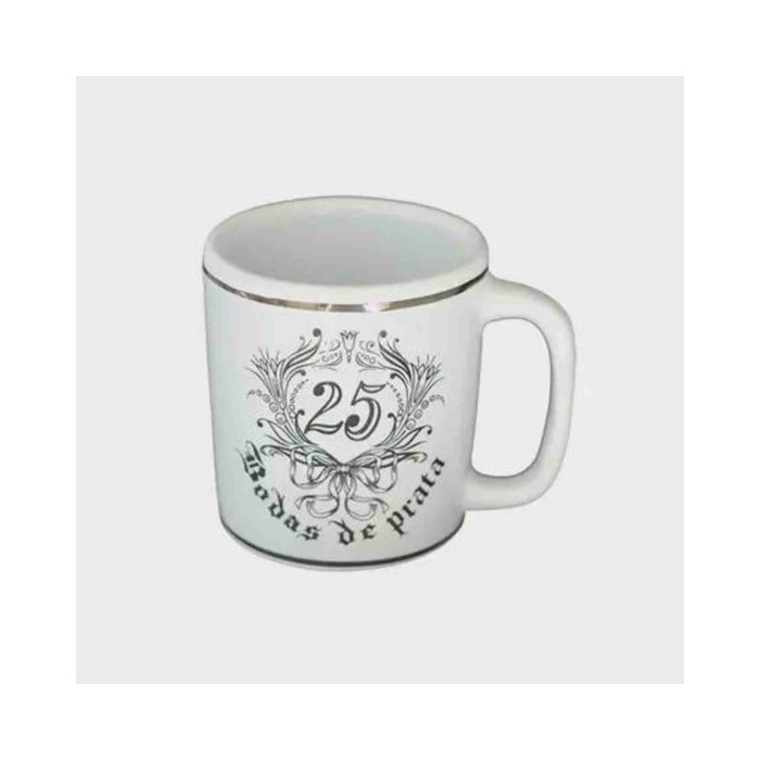 Brindar o amor é sempre uma excelente pedida. Um amor duradouro e nobre como o prata merece ainda mais momentos de celebração. Esta linda caneca Bodas de Prata é uma excelente lembrança para presentear o amor de 25 anos de união.
