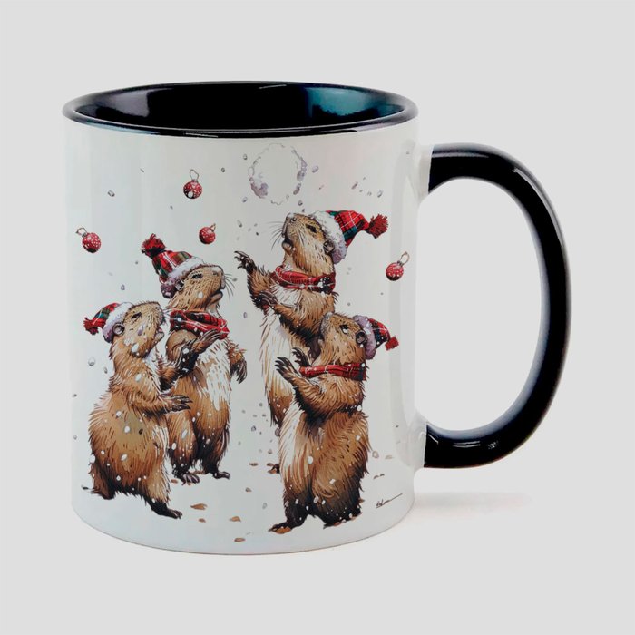 Caneca Branca com Interna Preta Y5 Capivara Família Natal Branca com Interna Preta
