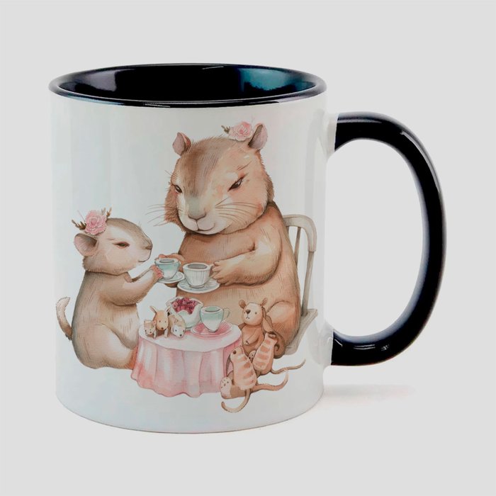 Caneca Branca com Interna Preta Y5 Capivara Menina Chá 9 Branca com Interna Preta