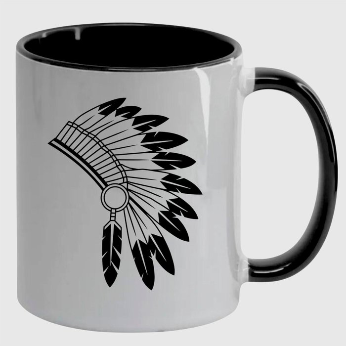 Caneca Branca com Interna Preta Y5 Cocar Cacique Silhueta