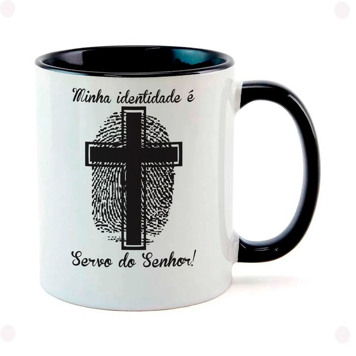 Caneca Branca com Interna Preta Y5 Frase Cruz Minha Identidade Servo do Senhor Branca com Interna Preta