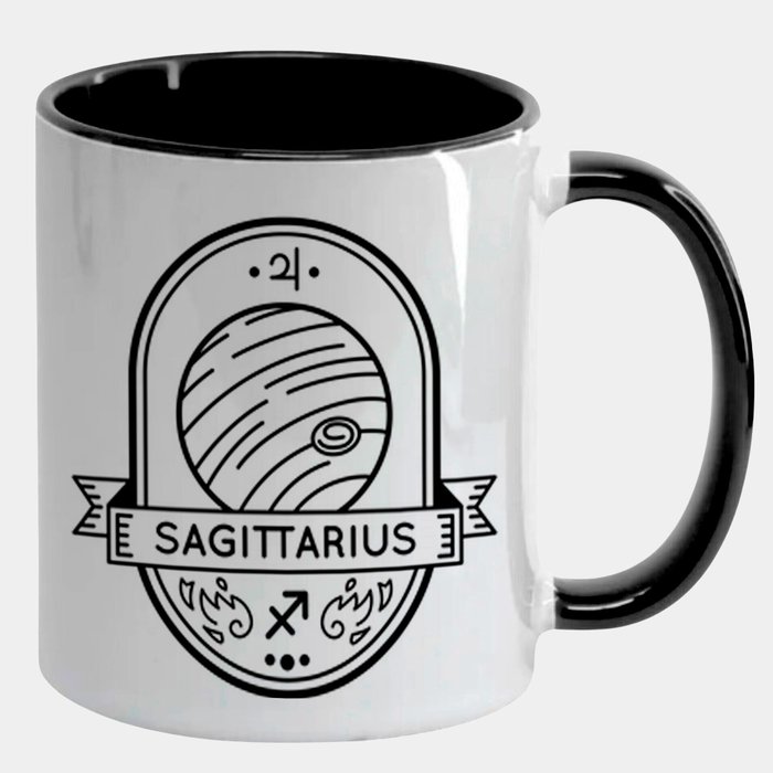 Caneca Branca com Interna Preta Y5 Signo Sagitário Planeta Arte
